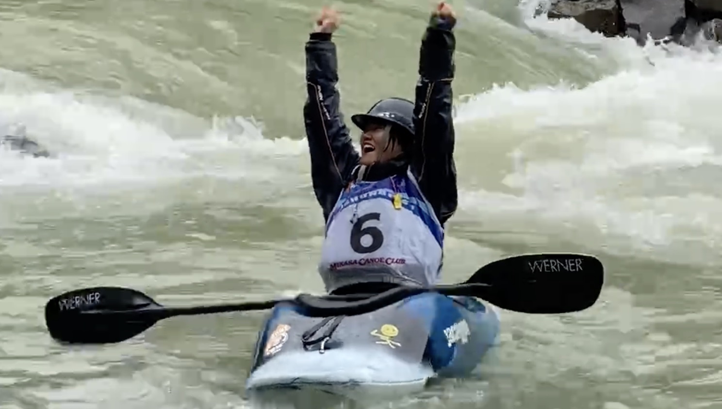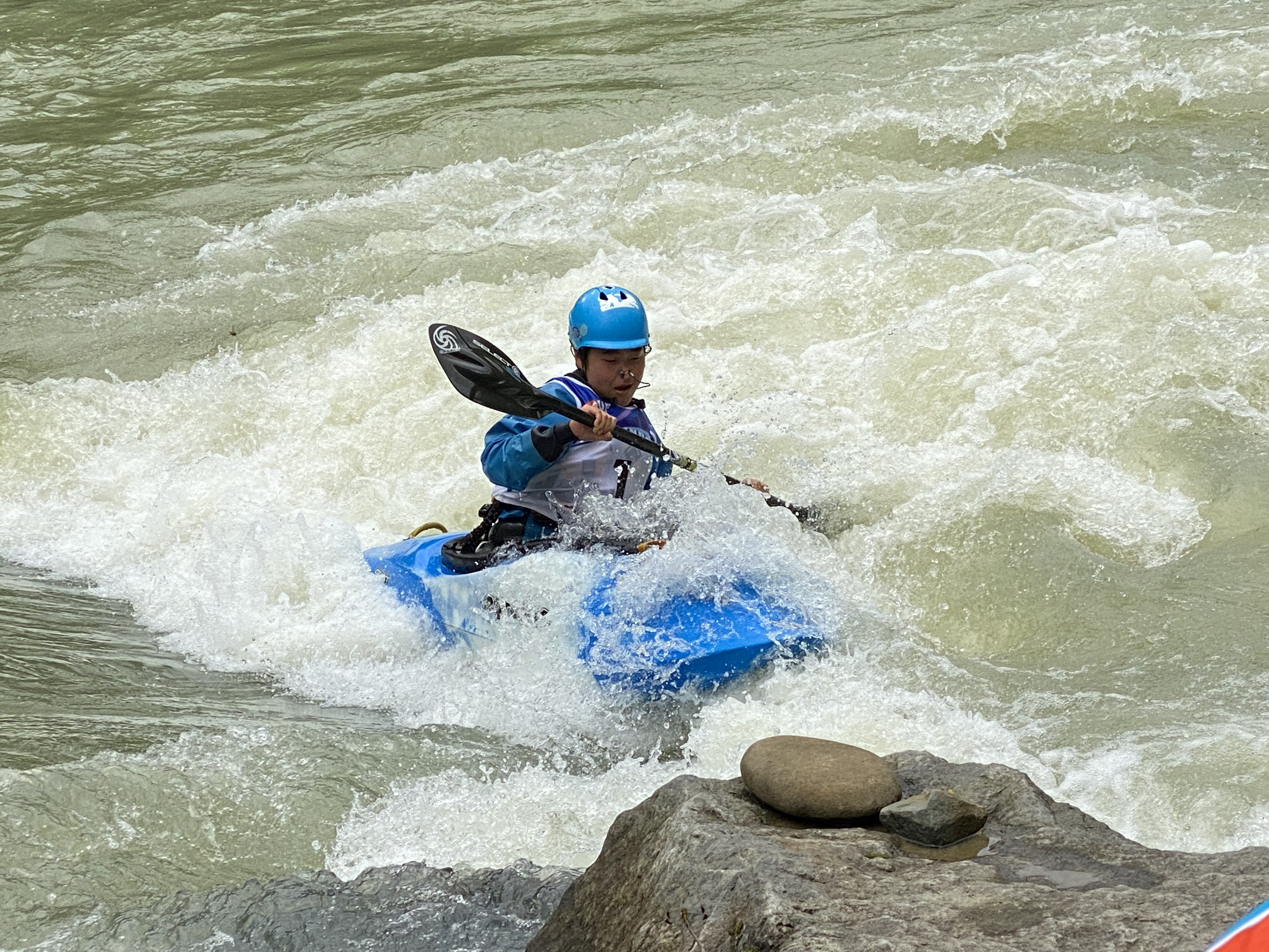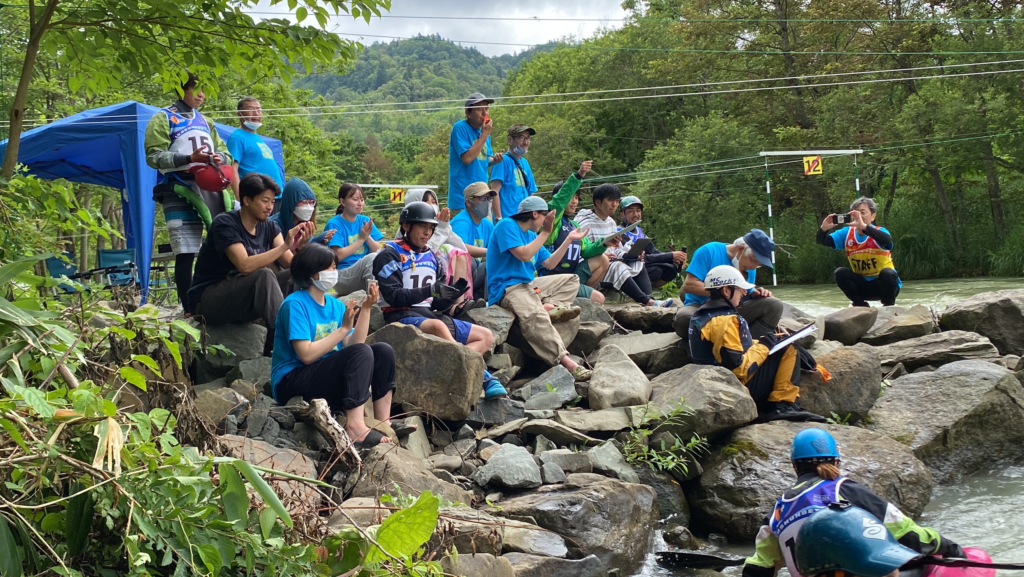今大会には先のイギリスで開催されていた世界フリースタイル選手権大会で銀メダルに輝いたクイーン・オブ・フリースタイラー高久瞳さんがゲストとして参加。さらに同じくイギリス帰りで、新婚旅行も兼ねて来道したJFKA(日本フリースタイルカヤック協会)会長、玉地遼介君も加わり、なんともワールドなコンペ。