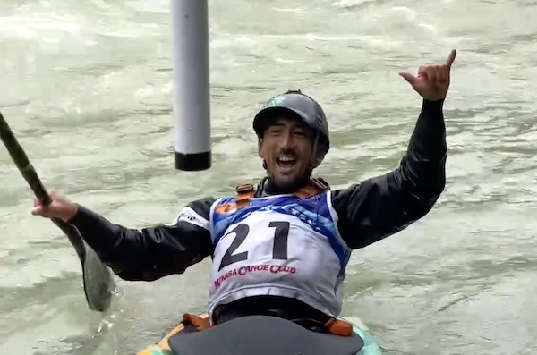男子決勝は遠藤武尊選手と久保雄一選手の三笠カヌークラブの同門対決。(やっぱりかつての様に主催者が上位入賞を図るという空気を読まないパターンはフリーでも…)