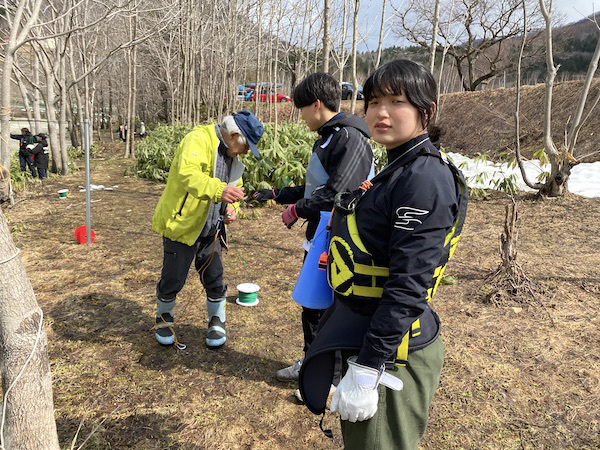 寒い寒い1日ではありましたが、学生さんの協力もありエンドレス・ロープが15張り、ワイヤーが7本張ることができました。この後も随時ゲートを増やしていき、練習環境を整えていきたいと思います。