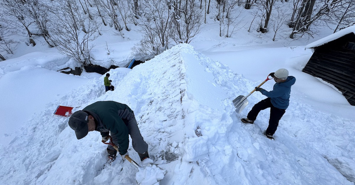 冷え込みの中、体を動かせば息が白く弾む。 正直なところ、この年齢での雪下ろしは体に堪える「しんどい」作業ではあるが、仲間と声を掛け合いながら進める時間は、どこか清々しくもある 。