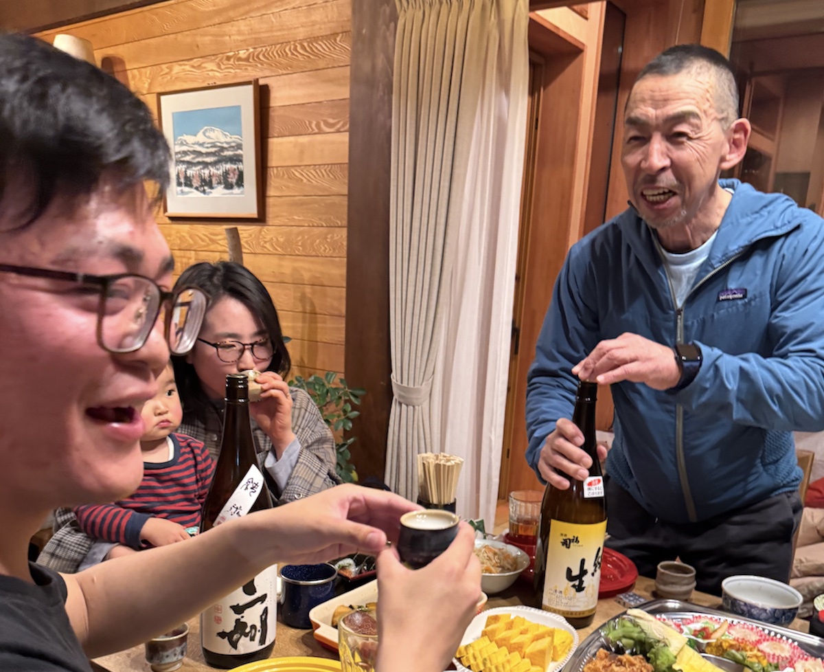 今回の集まりは大人19名、子供3名の大所帯 。会長宅には、いつものように20リットルの生ビール樽が鎮座し、それぞれが自慢の一品を持ち寄るMCCスタイルの大新年会だ 。テーブルには数えきれないほどの日本酒のボトルが並び、その銘柄の豊富さと旨さに、メンバー一同大満足の夜となった 。