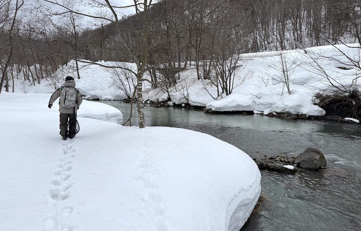今日は「イクシュン・スピンオフ」と題して、廣井社長からのお誘いで釣行へ 。 まだ寒さの残る季節だが、ホームリバーの状況を確かめるべく、いそいそと川面へ向かった 。