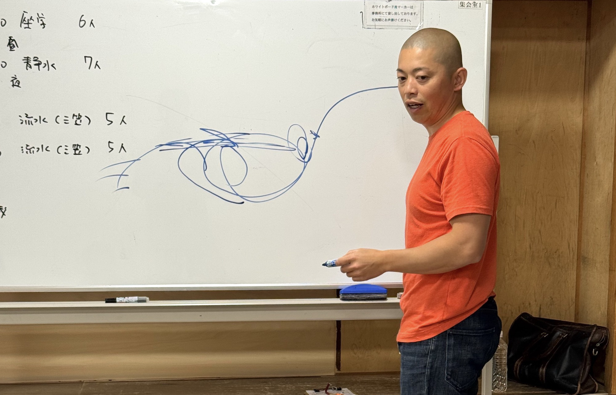 @ホワイトボードでの座学の講義をする矢澤一輝選手