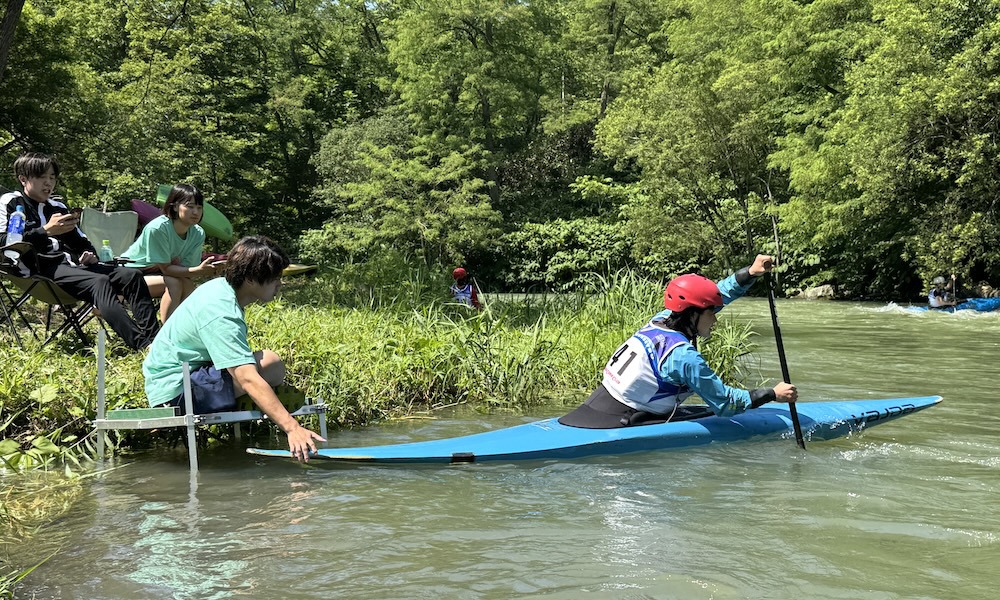 男子カヤック競技艇22名を筆頭に、総勢125名がエントリー。圧巻だったのはスラローム。北大OGで国スポ大分代表の越智ますみ選手が、並み居る男子を抑えてラップを奪取し優勝!男子も夫の越智恭平選手(相模原市カヌー妖怪)が制し、夫婦でタイトルを総なめにする快挙を成し遂げました。