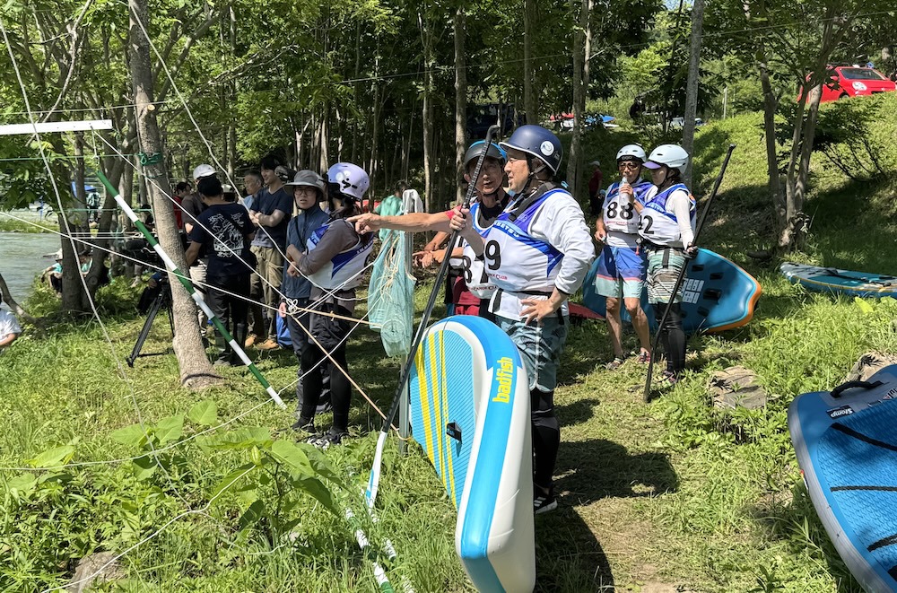 今大会初開催のSUP部門!激流のゲートを「ちん(沈)」することなく果敢に攻める13名の勇姿に、ギャラリーからはどよめきと感嘆の溜息が漏れました。