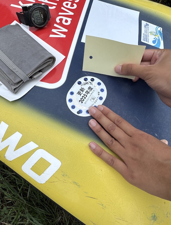 検艇は艇のスペック確認に留まらない。 選手の命を守るPFD(ライフジャケット)の点検には、さらに厳しい目が注がれる 。 実際に重りを用い、水で満たされたタライの中で規定の浮力を維持できるかを確認する、泥臭くも一切の妥協が許されない作業だ 。 合格の証であるシールの貼り付けや、新規更新の処理など、その工程は意外なほどに煩雑を極める 。